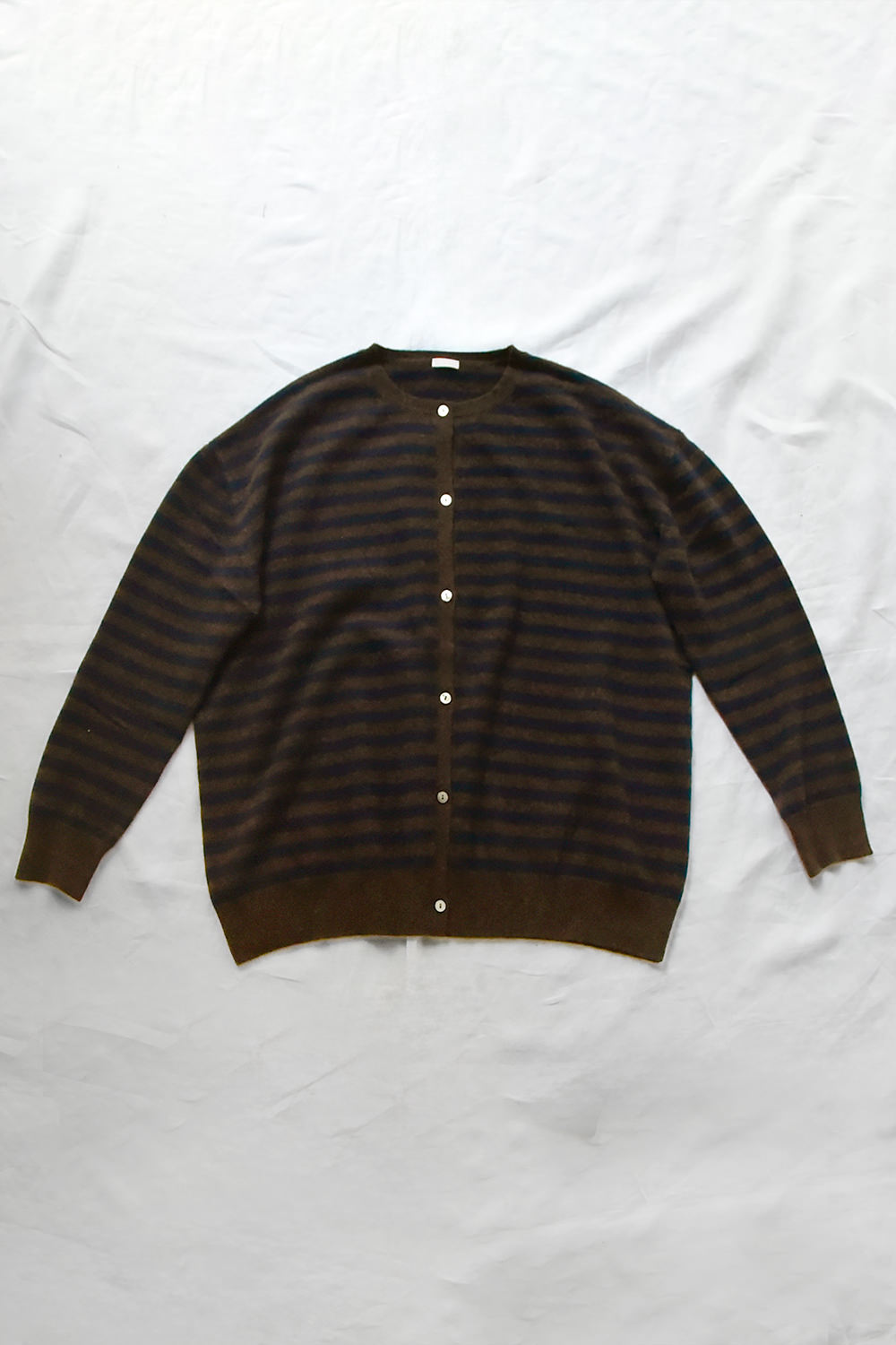 MAKIE / マキエ, Cashmere Cardigan – Navy x Brown Stripe